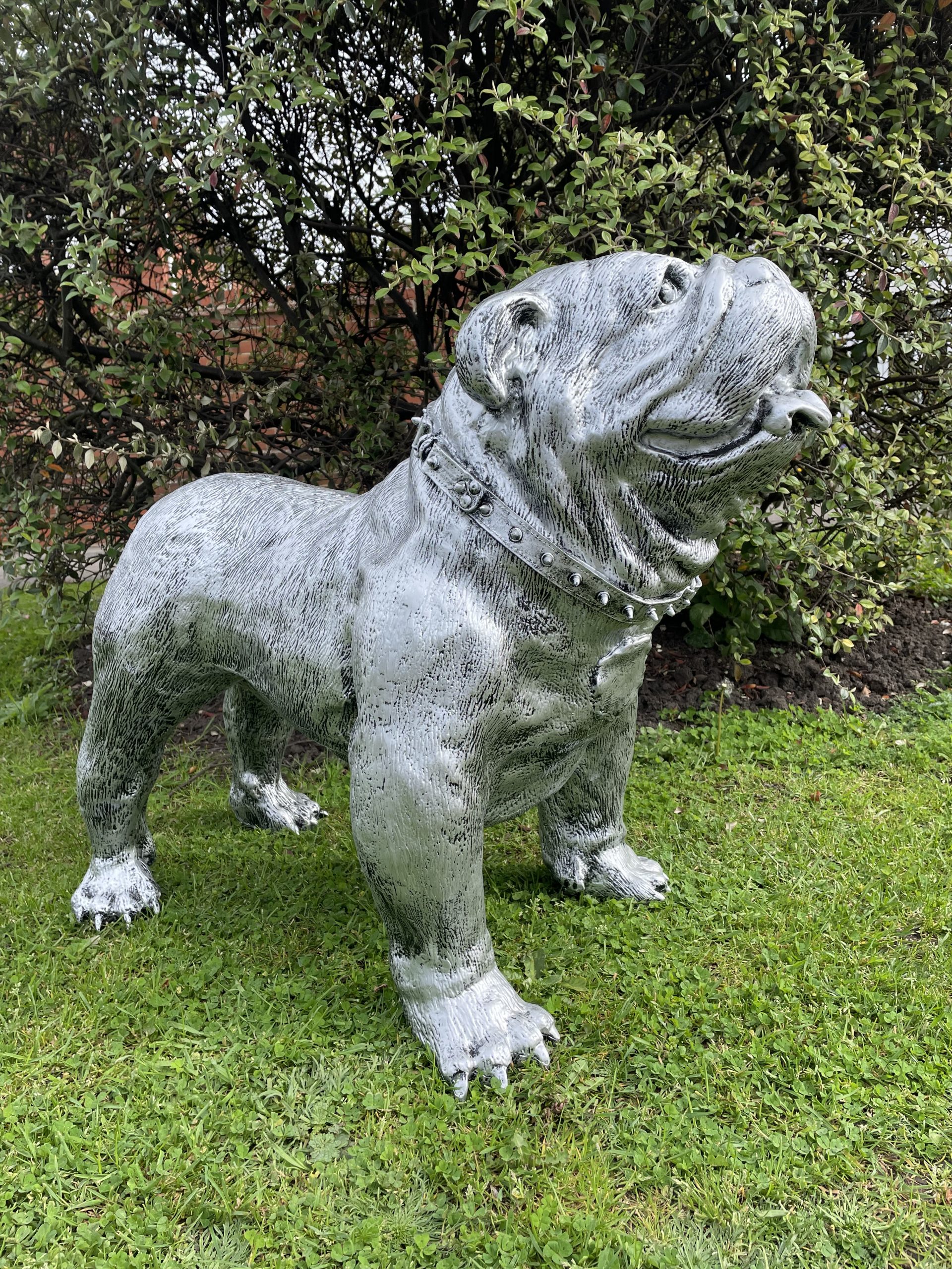 Large British Bulldog in Silver with Studded Collar
