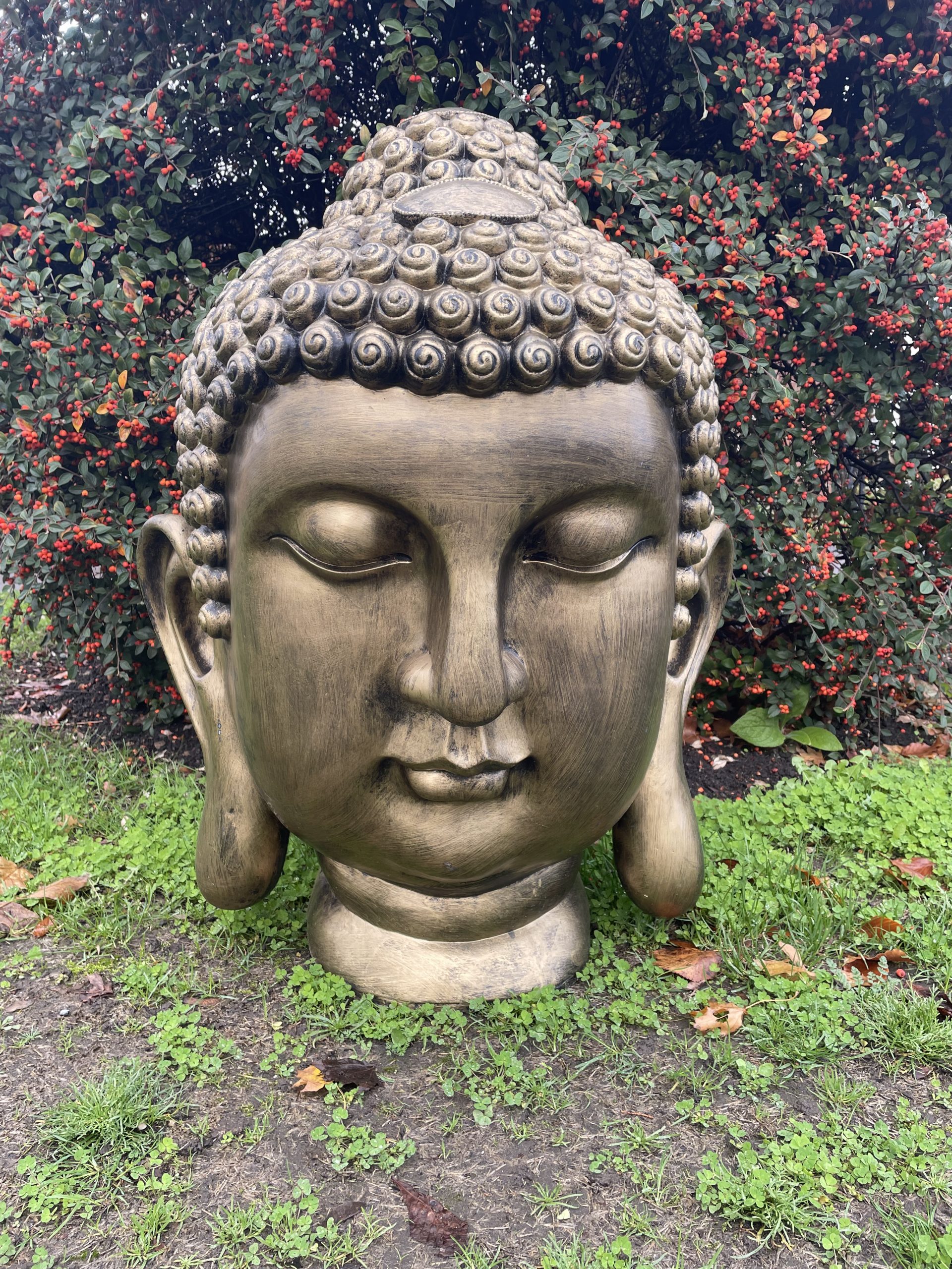 Large Round Buddha Head in Gold/Bronze