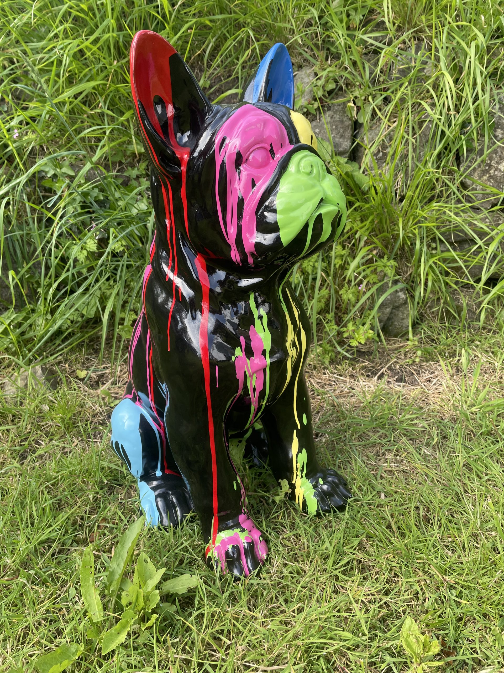 Medium Sitting French Bulldog in Black with Splashed Paint