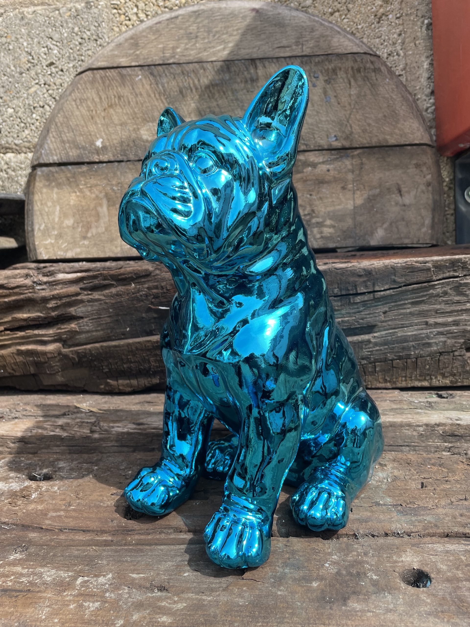 Sitting French Bulldog in Blue Chrome