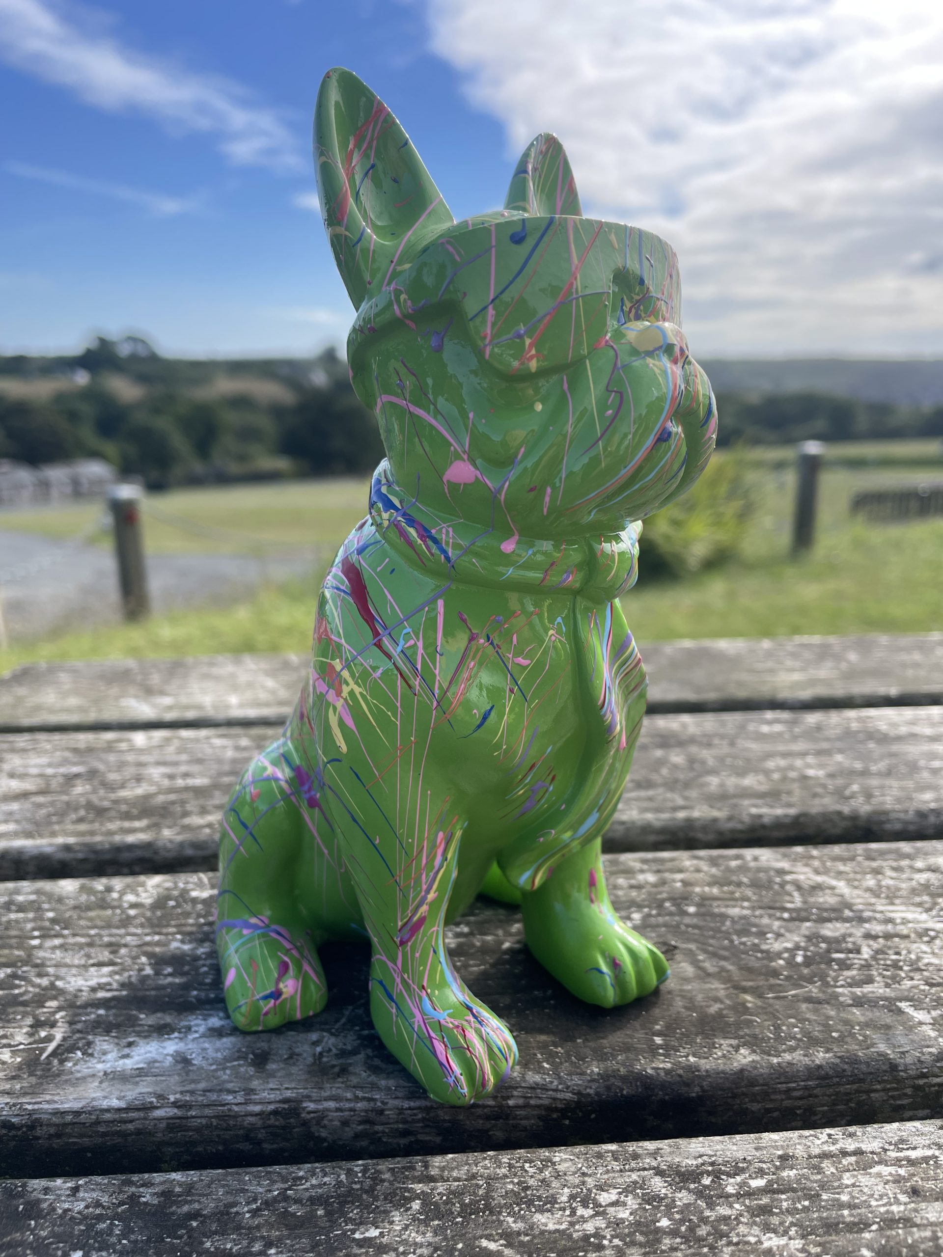 Small French Bulldog Wearing Glasses in Splash Paint Green