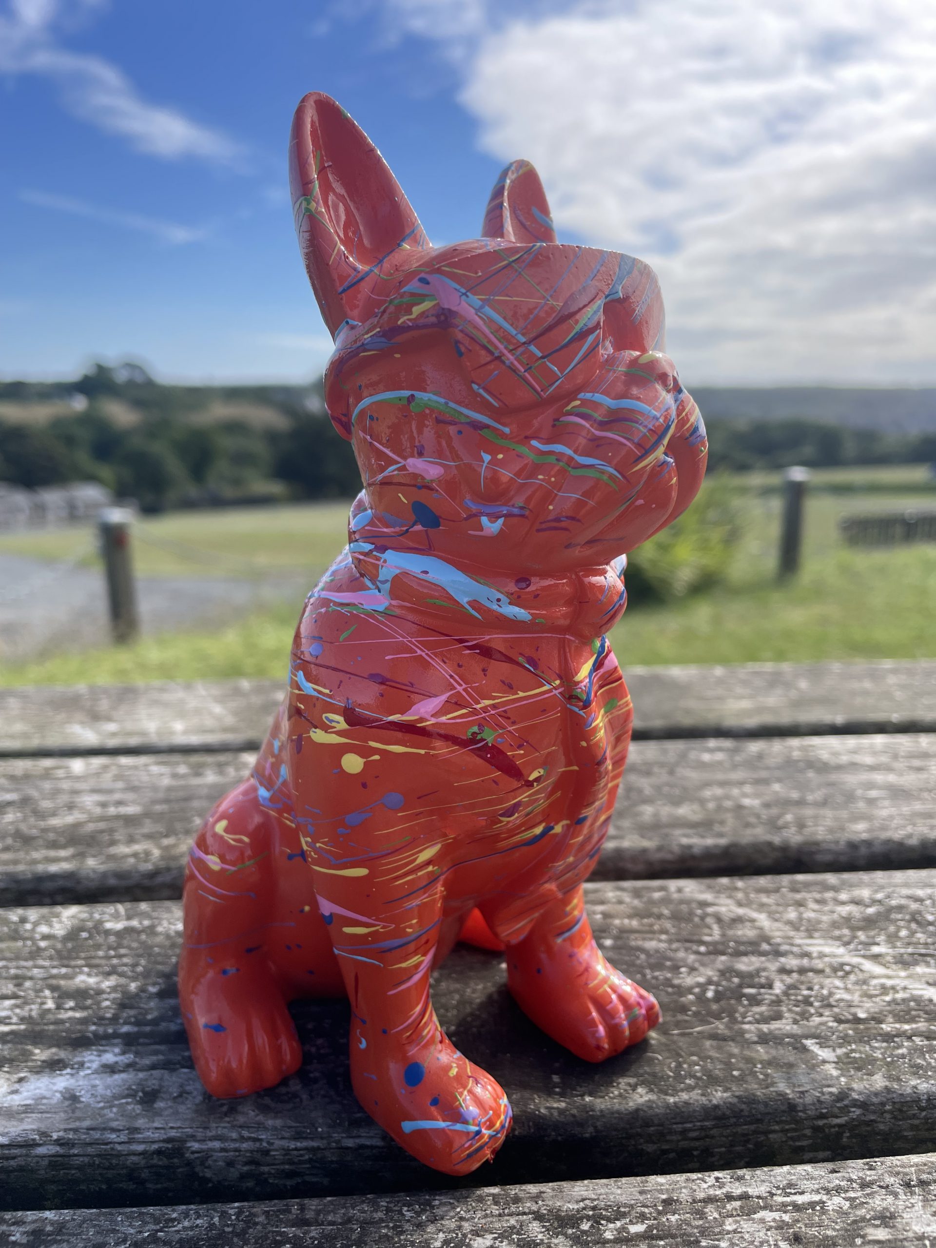Small French Bulldog Wearing Glasses in Splash Paint Orange